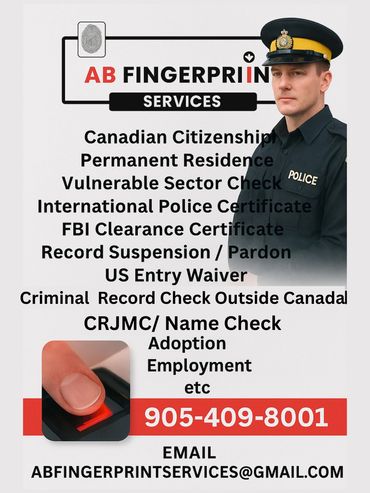 Applying for permanent residence in Canada? A key requirement is obtaining an Certified Criminal Record Check. At AB Fingerprint Services, we’re here to support you with reliable, accurate, and secure fingerprinting services to help streamline your permanent residence application process.